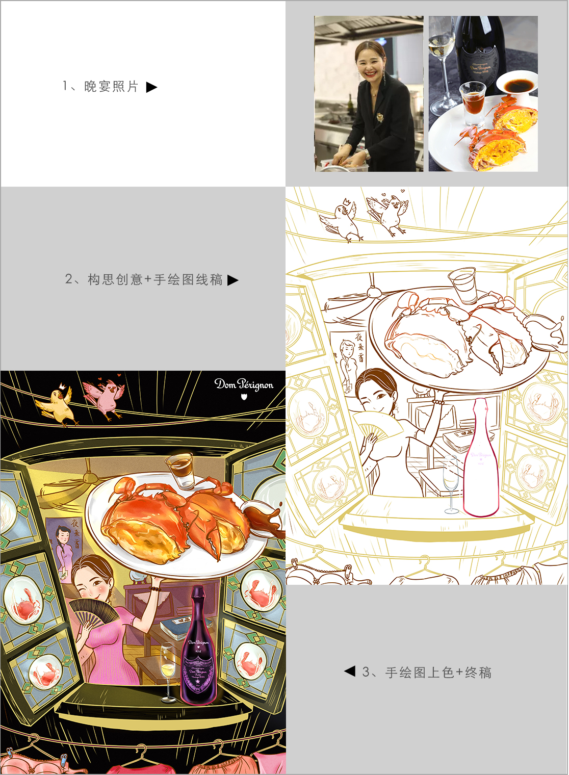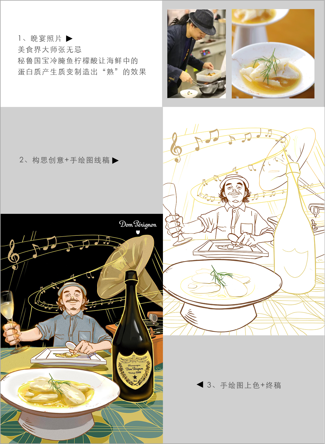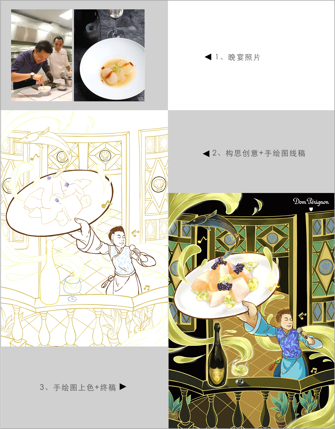 365在线体育投注官网绘馆作为华南地区首批以插画为主线的品牌策略服务机构,从专业的角度分析穿透 力要来自丰富的画面,如有温度的各种高端食材配唐培里侬香槟王,七位美食圈大咖和 Seven主厨品尝食材时,面带笑容表达对喝香槟的享受,就如唐培里侬追求品质极致一 样,把艺术和香槟完美结合一起。